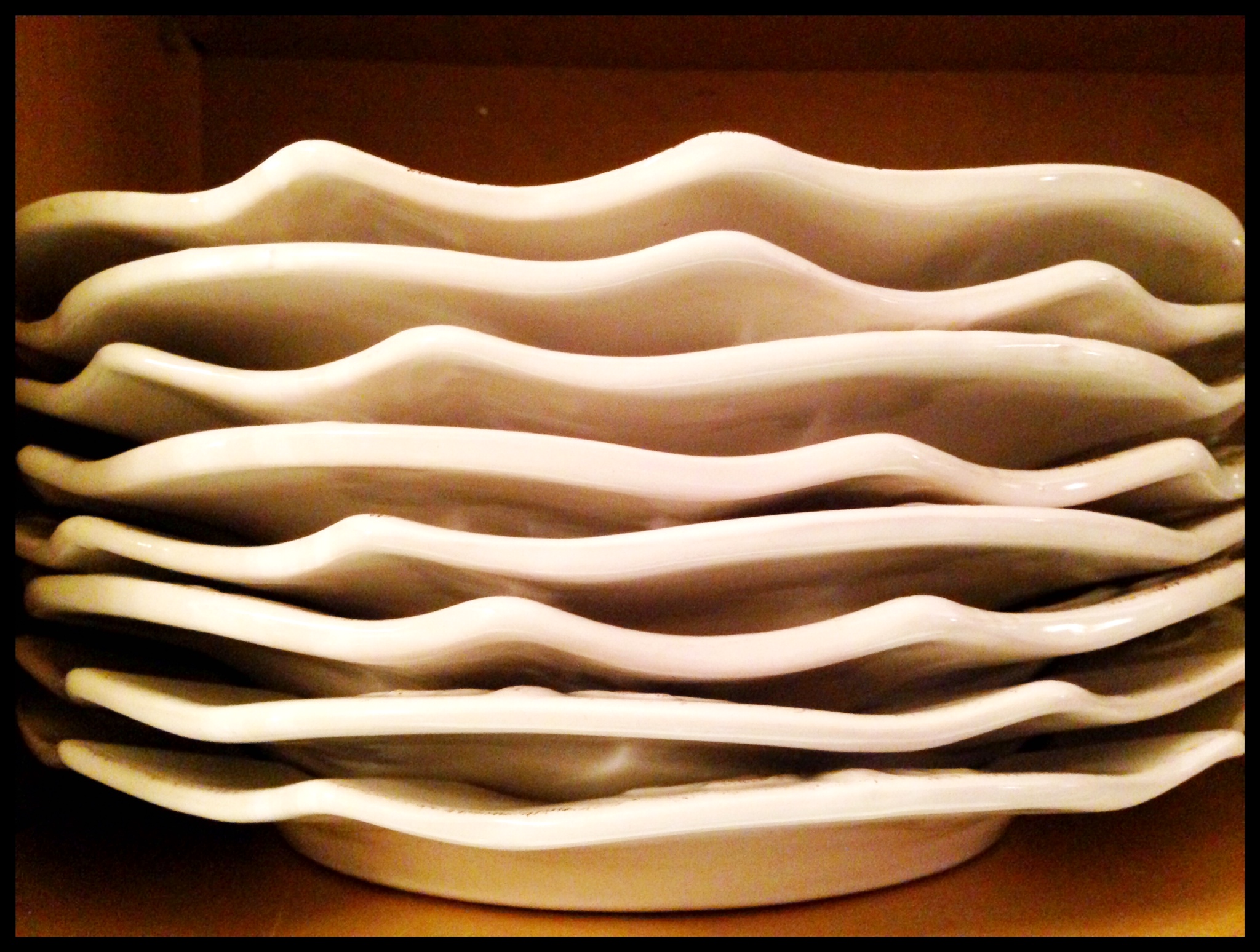 One of my favorite movies is Julie and Julia, the story of a woman, Julie Powell, who blogs her way through Julia Child’s “Mastering the Art of French Cooking.” It’s brilliantly performed, and the food… oh, the food… it makes me salivate just thinking about it! The chocolate almond cake, the bruschetta, the boeuf bourguignon. Yum, yum and yum! If you’ve seen the film, towards the end Julie Powell throws a dinner party in celebration of her accomplishment of making her way through all 536 recipes in 365 days. The scene takes place on the rooftop of her Brooklyn apartment and she adorns the area with white lights and flowers, and she’s wearing the cutest white sundress, serving Julia Child’s Pate de Canard en Croute (boned stuffed duck in a crust) and a delicious wine. There’s just something about the atmosphere, the mood, the festive environment she creates. Part of it is her dinnerware. She uses mis-matched, vintage-ish dishes and serving trays, but it totally works beautifully!