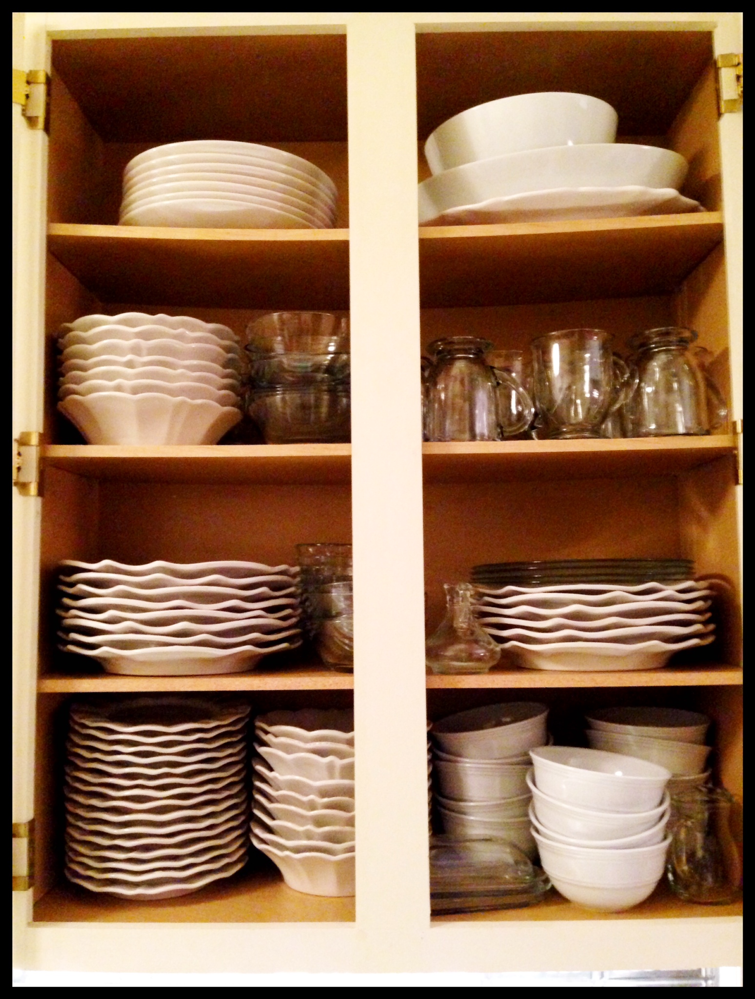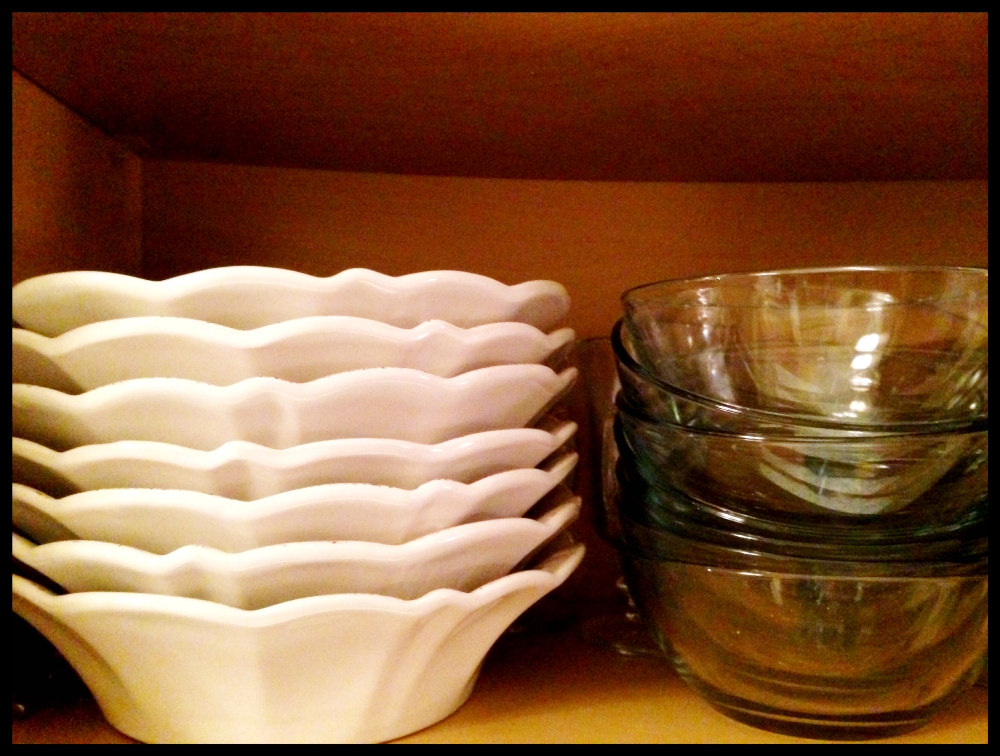 I love, love, love our everyday ware, though. It’s Provence in ivory from Bed, Bath and Beyond, and it’s beautiful! It looks delicate, but is super sturdy. Great for certain members of my immediate family who sometimes drop things in the kitchen. ;) I also have a set of clear glass dinnerware that I got from Old Time Pottery (they’re a fantastic deal!) that I sometimes use to do a little something different.