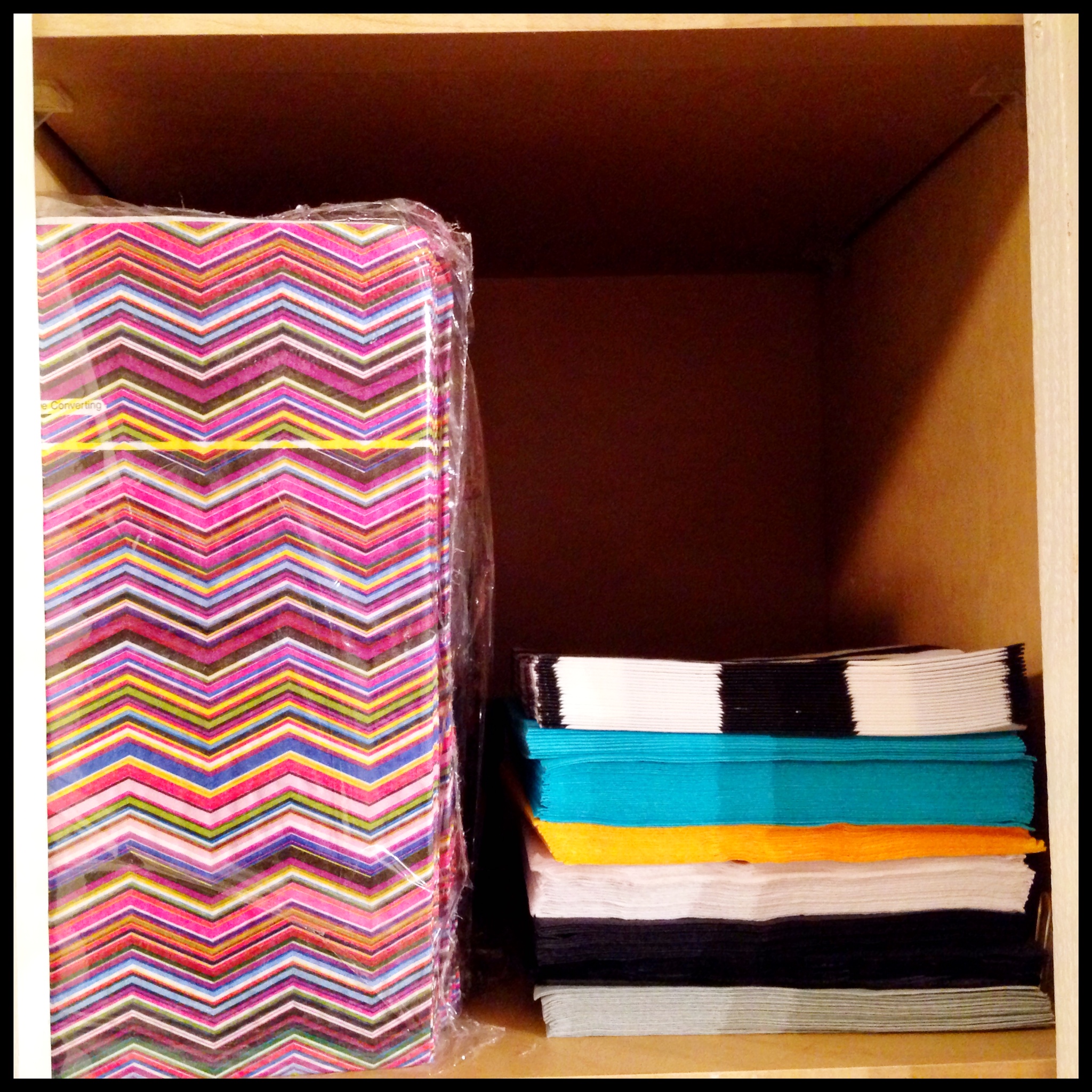 Although I have my everyday dinnerware with service for 24, there are those times when it’s just not feasible to use them. Lack of time, lack of energy, lack of clean dishes… all valid reasons to go to plan B (at least that’s what I’m going with!). It’s then that I’m so grateful for places like Family Dollar where they have paper-products-a-plenty for JUST. ONE. DOLLAR. You can get 14 plates for a buck. 16 cups for a buck. 20 napkins for a buck. And all in a myriad of colors from red all the way through the rainbow, even teal, silver and gold! My husband even stuffed my Christmas stocking with some festive napkins to keep in my paper product inventory.