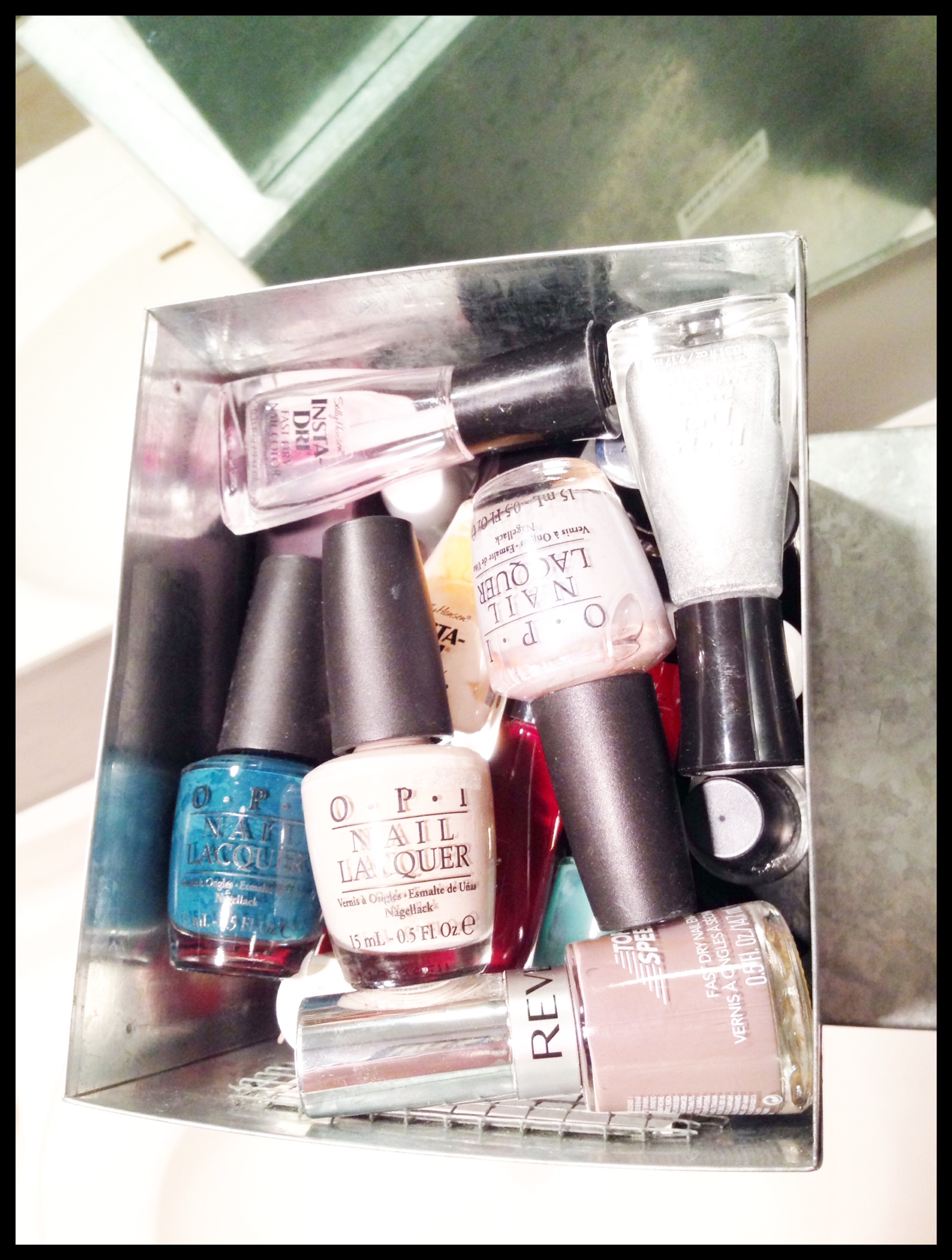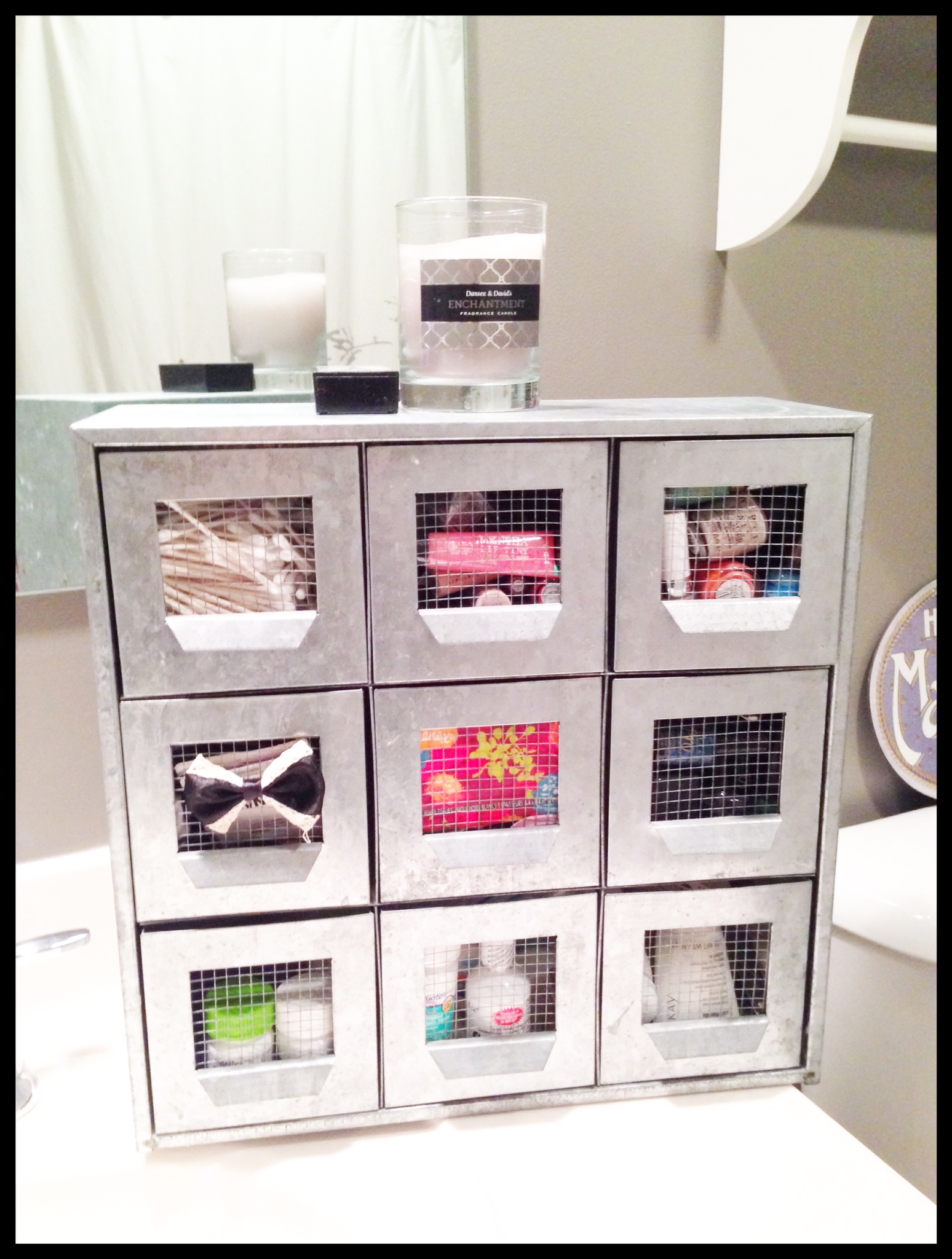 Several years ago, I came across this awesome and amazing galvanized metal storage unit. I knew exactly what I was to do with it, too. It would become the new home for many of my morning routine accouterments. Perfect for cotton swabs, make-up, nail polish, and the like! I found mine at Ikea, but since they don’t carry them any longer, you can get your very own similar storage solution at my home away from home, Hobby Lobby (go grab this 40% coupon before you buy it!). Here’s a snapshot of how I’m using mine!