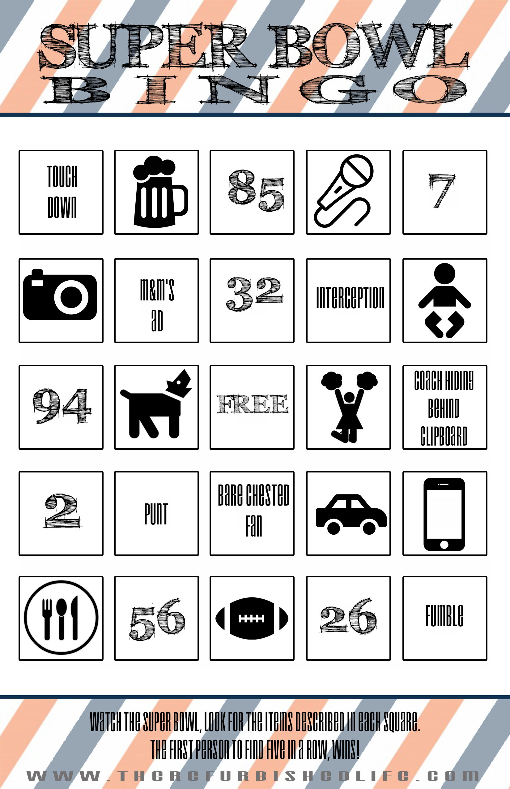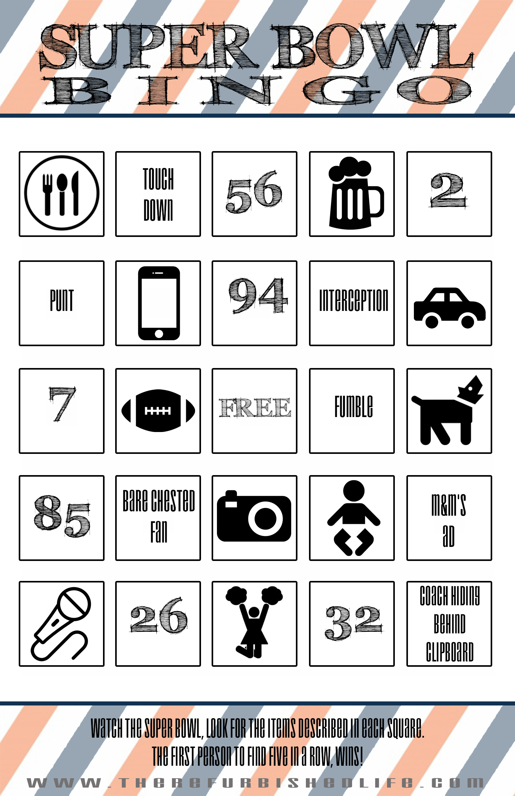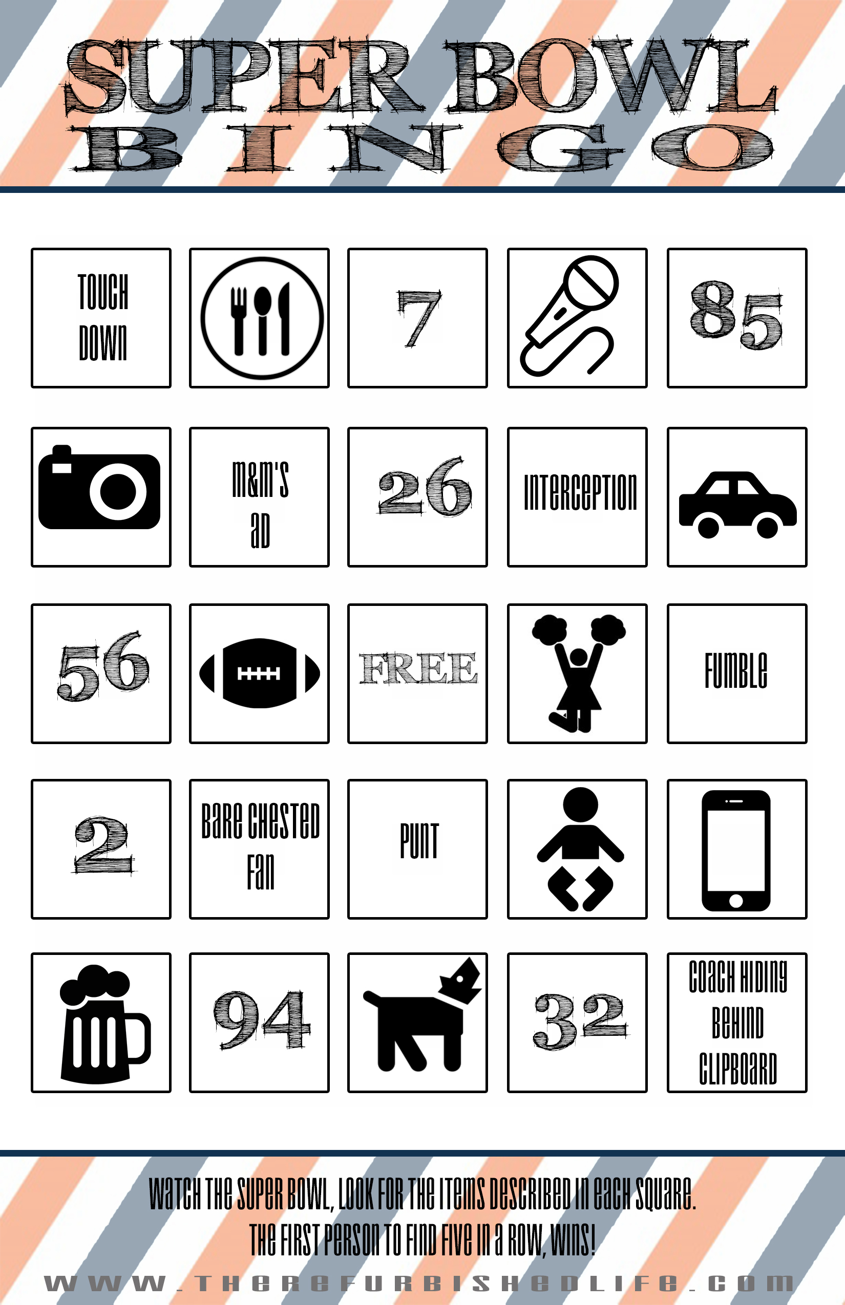 And with that, I determined that “the best of both worlds” option would be a bingo game. It checks off all of the criteria for any guest no matter your love for or aversion to football. A Super Bowl Bingo! Not only does it encourage game-watching, but also gives those of us less-fanatic about football a chance to be involved while getting a little healthy competition and a social fix as well.