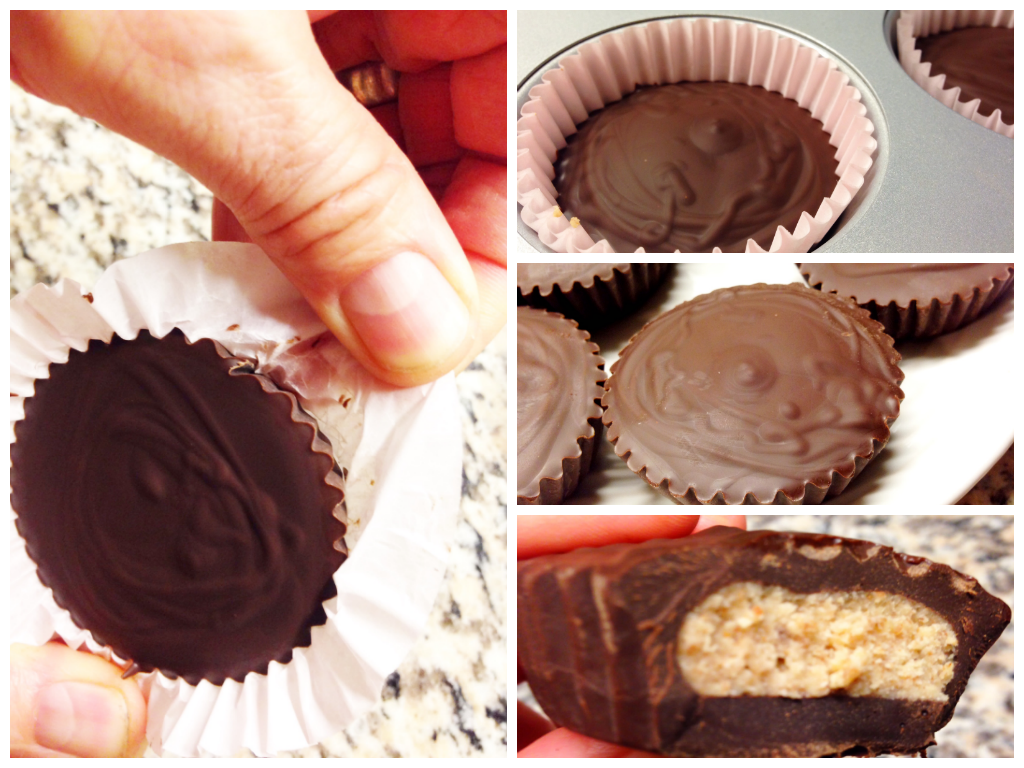 - Once they are firm, bring out of the freezer and gently remove the paper cupcake baking cups from each chocolate almond butter cup.