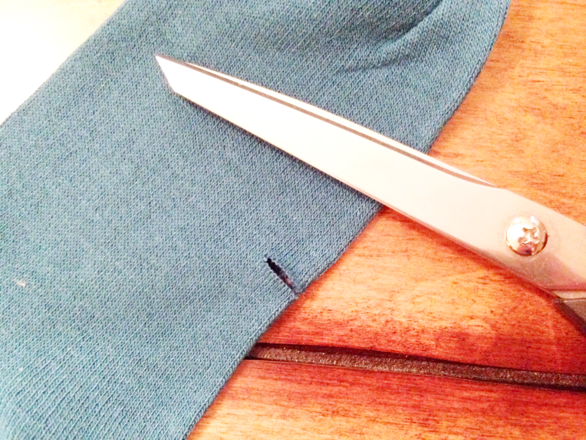 Then, simply make a little snippet in the sock just an inch or so above your elbow.