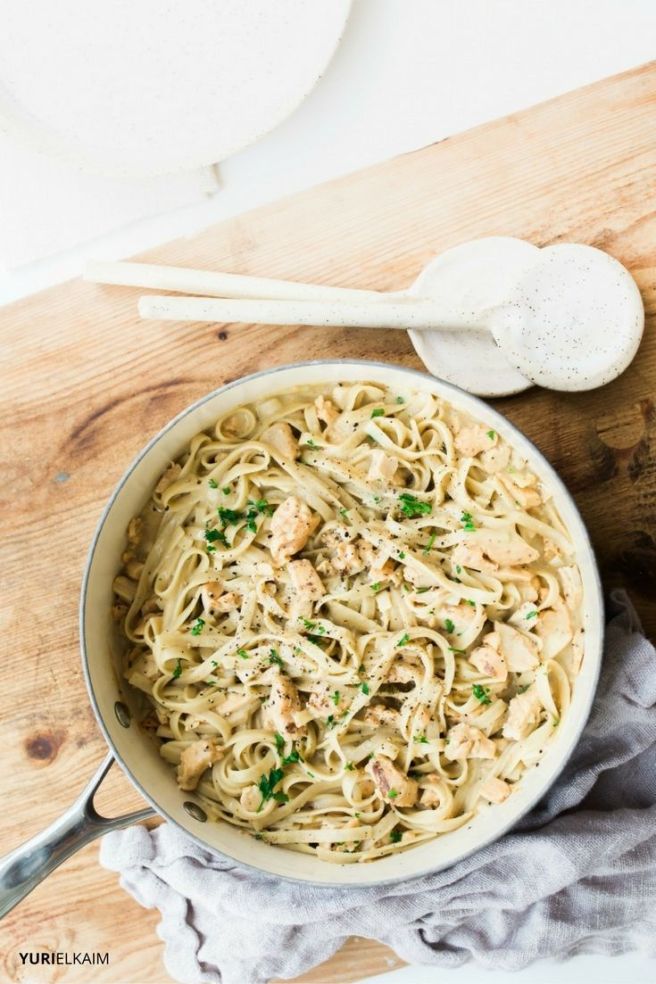 We tried this simple (like, super simple!) meal while on a mini-vacation this weekend and it’s dee-lish-usss!!! Tasty alfredo noodles and yummy caesar salad. It was like real Italiano! Plus, it’s dairy free, gluten free, sugar free and guilt free. ;) The hubz raved about it, which is always a win for me!